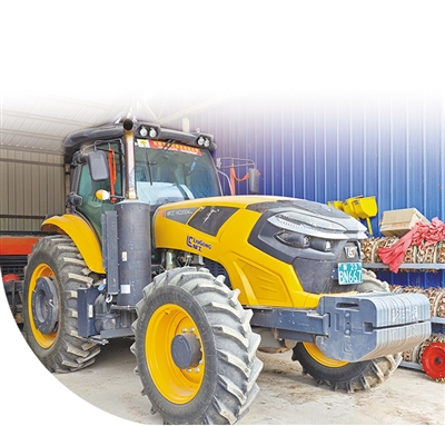 从普通农用拖拉机、大中型农用拖拉机,到巨大的联合收割机、番茄采收机,还有一排排播种机、施肥机、植保无人机……记者来到农场农机户杨发英家的小院,只见铁皮棚下停满了各式农机。