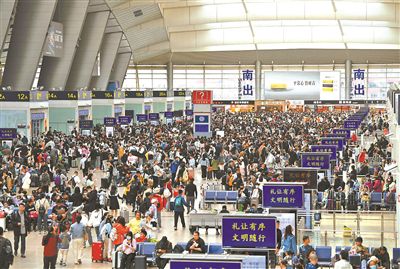 今年的“五一”假期客流以探亲流、旅游流为主,北京南站实施“一日一图”制,日均开行271.5对列车,日均运力达到23.9万人。在启用高峰运行图的基础上,采取加开临时旅客列车和动车组重联运行等措施提升运力,增开至天津、德州、济南、临沂、菏泽、聊城、青岛、濮阳等方向动车组列车22对。为方便旅客快速便捷出行,南站开启了地下换乘层京沪高铁、京津城际4个快速进站厅,每日开关时间根据现场客流情况动态调整,同时在南、北地下进站口处设置“急客”通道,为距开车20分钟内的旅客提供优先快速进站服务,减少旅客进站乘车时间。