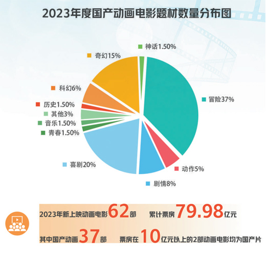 现实和预期,给了动画人开拓事业的底气。据不完全统计,2013年,上映33部动画电影,总票房为16.4亿元,国产动画占比为38%。2023年新上映动画电影62部,累计票房79.98亿元,其中,国产动画37部(含港澳台);票房在10亿元以上的2部动画电影均为国产片。无论作品数量还是票房表现,国产动画电影都树立了自己的“主场优势”,也在观众中赢得信任与口碑。